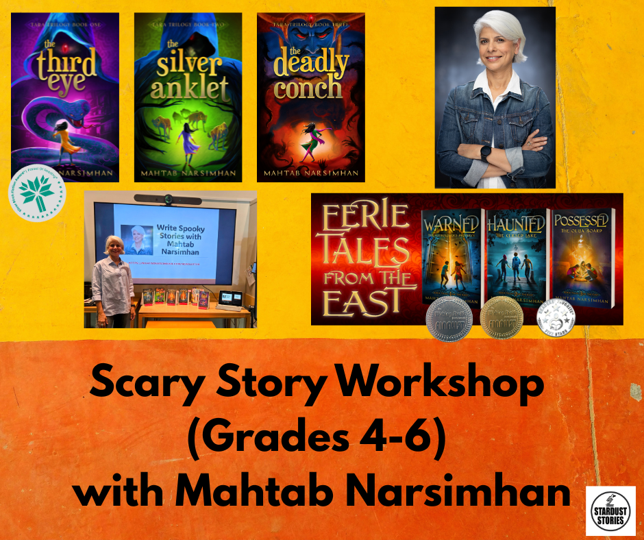 A hands-on writing lab where grades 4-6 learn a repeatable suspense toolkit to apply to their own stories. Mentor texts include WARNED: The Astrologer’s Prophecy, HAUNTED: The Cursed Lake, POSSESSED: The Ouija Board, and Valley of the Rats.